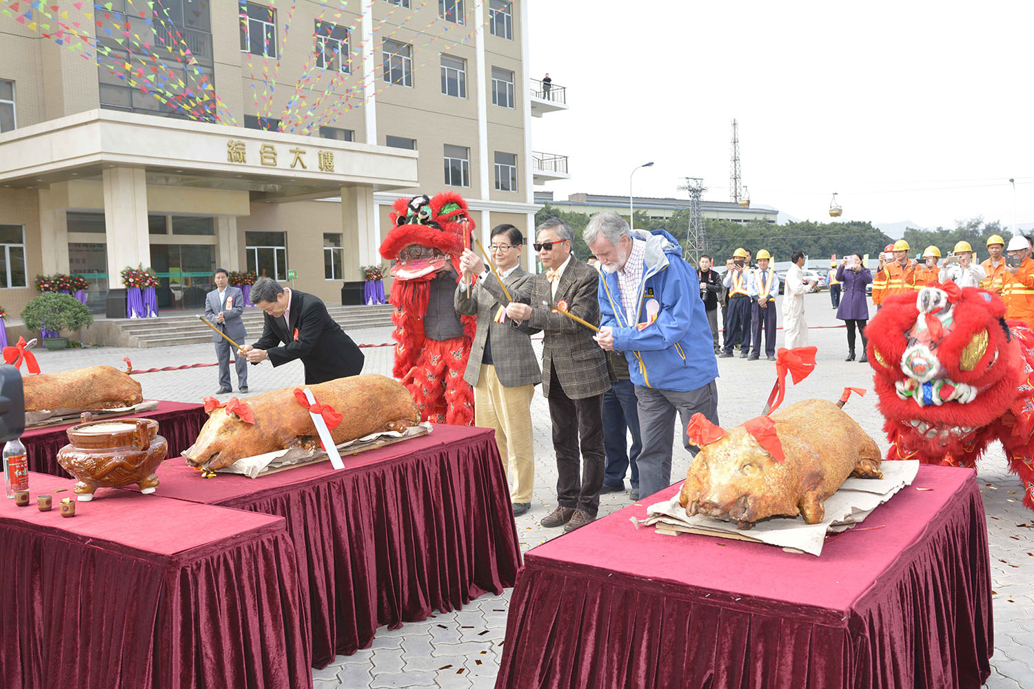 上午11:08,集团行政总裁梁英华先生、云安区区委书记,区人大常委会主任黄泽寰先生、青洲水泥集团执行董事庄善敦先生、曾百中先生、青洲英坭有限公司董事陈启鸿先生、集团国内水泥业务总经理林俊标先生在主席台上,为新线项目的竣工典礼举行剪彩仪式!此时,舞台上烟花绽放,彩花飞舞,台下鼓掌声鞭炮声喜乐声汇成一片,令人振奋!