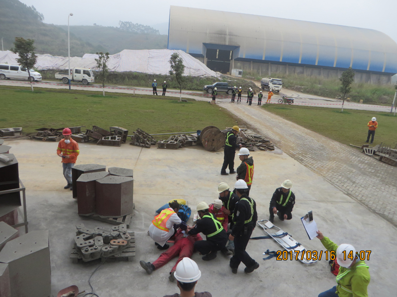 根据集团保卫部的演练部署,3月15日-16日,安环部分别在A厂、B厂水泥磨电力室区域举行 "外判焊工模拟触电事故"紧急救援演习,参与部门相关人员各司其职,通力合作,演习顺利完成。