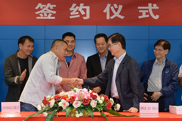 签约仪式上,香港青洲英坭集团行政总裁曾百中先生、集团国内水泥业务总经理林俊标先生、祥力公司总经理刘建中先生分别发表热情洋溢的讲话,热烈祝贺收购项目的成功签约,寄望继续紧密合作,实现共赢发展! 15点38分,集团国内水泥业务总经理林俊标先生与创东公司法人代表丁海镜先生在主席台上正式签约,在场60多人共同见证这具里程碑意义的重大时刻,并以热烈的掌声致以祝贺!