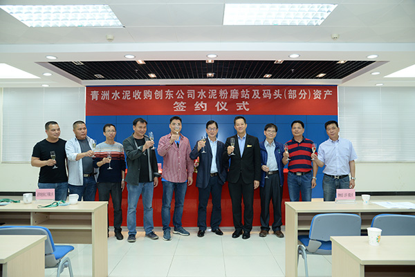 人间四月百花开,春风送暖喜事来!4月23日下午,公司在B厂办公楼四楼会议室,隆重举行青洲水泥收购创东公司水泥粉磨站及码头资产的签约仪式,出席签约仪式的嘉宾有:香港青洲英坭集团行政总裁曾百中先生、集团国内水泥业务总经理林俊标先生、集团国内业务财务总经理梁富强先生、公司生产运作总经理蔡和先生、销售总经理周鹏芝先生,创东公司和祥力公司股东郭绍佳先生、李焕杰先生,创东公司法人代表丁海镜先生、总经理刘建中先生等,公司管理层、各部门主管和员工代表也参加了签约仪式。