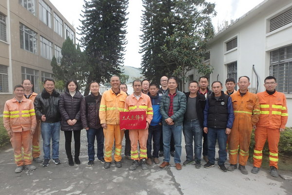在云浮市总工会组织举办的2018年度云浮市工人先锋号评选活动中,我司矿务部钻爆班组荣获“云浮市工人先锋号”称号,这不仅是矿务部钻爆班组的荣誉,更是公司的荣誉!1月3日下午,公司生产运作总经理蔡和先生、公司管理层罗淑梅、文国权,工会主席黄伟文等代表公司在矿务部办公楼举行授牌仪式,表示热烈祝贺!