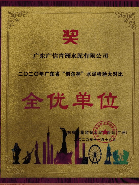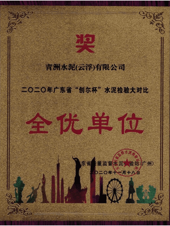 2020年11月18日至20日, 2020年广东省“创尔杯”水泥检验技术大对比总结会暨第二届粤港澳大湾区水泥检验技术交流会在广东阳江顺利召开。会上表彰了本次大对比取得优异成绩的单位,其中广东广信青洲水泥有限公司、青洲水泥(云浮)有限公司和云浮市祥力水泥有限公司均荣获广东省水泥检验大对比 “全优单位”称号。这是广东广信青洲水泥有限公司连续第十九年,青洲水泥(云浮)有限公司连续第八年获此殊荣,而云浮市祥力水泥有限公司加入青洲集团后连续三年获得此项殊荣。通过参加水泥行业的检验大对比活动,充分体现了公司分析检验技术持续保持在全省领先水平。