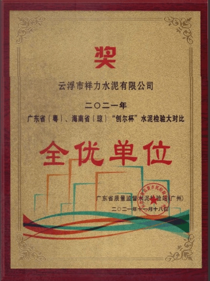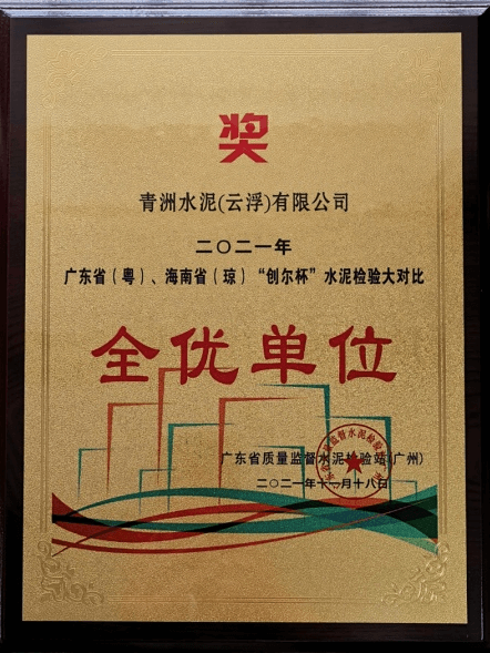 2021年11月18至19日,由广东广业检测有限公司、广东省质量监督水泥检验站(广州)和广东省硅酸盐学会主办的2021年广东省(粤)、海南省(琼)“创尔杯”水泥检验技术大对比总结会暨第三届粤港澳大湾区水泥检验技术比对交流会在广东江门顺利举行。会上表彰了本次大对比取得优异成绩的单位,其中广东广信青洲水泥有限公司、青洲水泥(云浮)有限公司和云浮市祥力水泥有限公司均荣获广东省水泥检验大对比“全优单位”称号。这是广东广信青洲水泥有限公司连续第二十年,青洲水泥(云浮)有限公司连续第九年获此殊荣,而云浮市祥力水泥有限公司加入青洲集团后连续四年获得此项殊荣。通过参加水泥行业的检验大对比活动,充分体现了公司分析检验技术持续保持在全省领先水平。