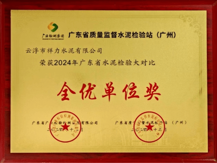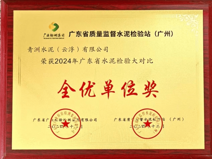 2025年12月18日至20日, 由广东省质量监督水泥检验站主办的“2024 年广东省水泥检验技术大对比暨第六届粤港澳大湾区水泥检验技术对比总结大会”在广州华泰宾馆顺利举办。会上,广东广信青洲水泥有限公司、青洲水泥(云浮)有限公司、云浮市祥力水泥有限公司均荣获“2024年广东省水泥检验大对比‘全优单位’奖”。这是广东广信青洲水泥有限公司连续二十三年,青洲水泥(云浮)有限公司连续十二年获此殊荣,而云浮市祥力水泥有限公司加入青洲集团后连续七年获得此项殊荣。